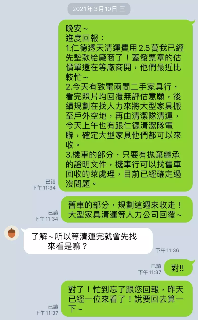 1.協助賣方解決屋內雜物問題:清運屋內雜物及舊機車回收(本案上架1週售出)
